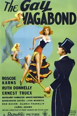 The Gay Vagabond is a 1941 American comedy film directed by William Morgan and written by Ewart Adamson and Taylor Caven. The film stars Roscoe Karns, Ruth Donnelly, Ernest Truex, Margaret Hamilton, Abner Biberman and Bernadene Hayes. The film was released on May 12, 1941, by Republic Pictures.[1][2][3]