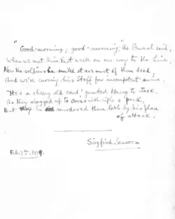 - ^ a b "Siegfried Sassoon poem to be displayed for first time at anti-war show". The Guardian. Press Association. 2017-03-20. ISSN 0261-3077. Retrieved 2025-02-01.