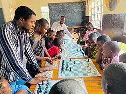 Several months later, 5,000 additional chess sets were sent to Africa reaching both Nigeria (3,000 sets) and Kenya (2,000 sets).[6] From there 1,000 chess sets reached into Ghana and Uganda though assigned Ambassadors. Over 2023, 50,000 additional chess sets have been sent to Africa, being warehoused in both Accra, Ghana and Nairobi, Kenya.[7] From these distribution hubs, 25 countries have received 1,000 chess sets through their local assigned ambassador.[8] These sets are given to schools, prisons, orphanages, and community centers in batches of 5 chess sets each.[9] In 2023 Susan Namangale from Malawi was named The Global Head.[10]