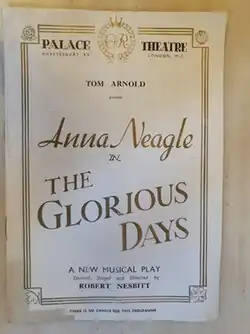 The Glorious Days is a 1952 British musical composed by Harry Parr Davis and Harold Purcell from a book by Robert Nesbitt and Miles Malleson. It was designed as a vehicle for Anna Neagle, showcasing her in several roles throughout history including two Nell Gwynn and Queen Victoria which she had played in films.