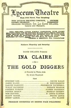 - ^ Unless otherwise cited, all cast info is from "The Gold Diggers". Internet Broadway Database. Retrieved May 1, 2014.