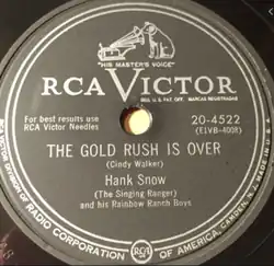 "The Gold Rush Is Over" is a song written by Cindy Walker, sung by Hank Snow, and released on the RCA Victor label (catalog no. 20-4522). In April 1952, it peaked at No. 2 on Billboard's country and western juke box chart (No. 4 best seller and jockey).[1] It spent 18 weeks on the charts and was ranked No. 10 on Billboard's 1952 year-end country and western juke box chart and No. 13 on the year-end best seller chart.[2]