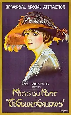 The Golden Gallows is a 1922 American silent drama film directed by Paul Scardon and starring Miss DuPont. It was produced and distributed by the Universal Film Manufacturing Company.[1][2] It is not known whether the film currently survives.[2][3]