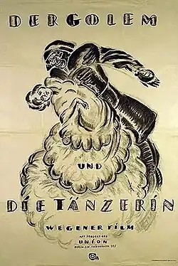 The Golem and the Dancing Girl (original German title: Der Golem und die Tänzerin) is a 1917 German silent comedy horror film. It is part of a trilogy, preceded by The Golem (1915) and followed by The Golem: How He Came into the World (1920). Paul Wegener and Rochus Gliese co-directed and acted in the film. Wegener also wrote the screenplay. This was the screen debut of Fritz Feld. It was produced by Deutsche Bioscop GmbH.[1]