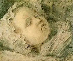 Infant mortality in Britain was high in the eighteenth century, even for the children of the wealthy, and Thomas had died before the painting was completed.[1][5] Hogarth used a study, probably completed after Thomas's death, as the basis for his image. With its numerous references to death and the passage of time, it may be that the painting is a form of memorial for Thomas.[5]