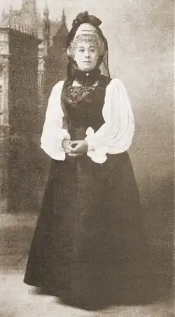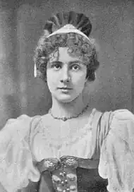 Mr. and Mrs. Carte hired a new soprano, the Hungarian Ilka Pálmay, who had recently arrived in England and quickly made a favourable impression on London audiences and critics with her charming personality.[15] Gilbert devised a new plot line revolving around Pálmay, making her character, Julia, an English actress among a company of German actors, with the topsy-turvy conceit that her "strong English accent" was forgiven by her audiences because of her great dramatic artistry. Rutland Barrington's role, Ludwig, became the leading comedian of the theatrical company and the central role in the opera.[16] Gilbert had paired the title character with contralto Rosina Brandram, causing Sullivan to suggest some different pairings of the characters, but Gilbert and the Cartes disagreed; Mrs. Carte went so far as to caution Sullivan that his ideas would upset the casting.[17] Unhappily for Gilbert, three of his usual principal players, George Grossmith, Richard Temple and Jessie Bond, who he had originally thought would play the title character, the prince and the princess, all left the company before rehearsals began for The Grand Duke, and so he reduced the size of these roles, further changing his original conception.[18]