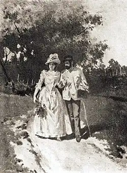 The story's main characters apparently had the real life prototypes, Sofia Kuvshinnikova and her husband Dr Dmitri Kuvshinnikov.[3] Modern literary historians take this for granted, although Chekhov himself denied it. On 29 April 1892 he wrote to his regular correspondent, the writer Lydia Avilova: "Yesterday I was in Moscow and all but choked myself to death with boredom and all kinds of misfortunes. Can you believe it, one my acquaintance, a dame of 42, had recognized herself in the 20-year-old heroine of my 'Grasshopper'... and now the whole Moscow seems to accuse me of smearing her good character. The only proof is superficial: the dame likes to paint in watercolors, her husband is a doctor and her lover a painter."[2]