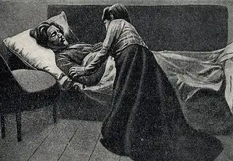 Finally, Ryabovsky gets himself another woman and Olga Ivanovna, dejected and outraged, returns home, dreaming of how she'd either commit suicide or write Ryabovsky a scathing, condemning letter... Something happens, though, to detract her attention: it turns out that Dymov is seriously ill: he'd caught diphtheria at the hospital by sucking up the mucus through a pipette from a sick man's throat. Several of his colleagues come to stay on duty by his bedside: they all speak of how gifted was this extraordinary, rare man, promising to become such a celebrity and is now dying due to his own carelessness.