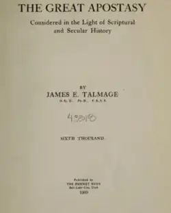 The Great Apostasy Considered in the Light of Scriptural and Secular History is a 1909 book by James E. Talmage that summarizes the Great Apostasy from the viewpoint of the Church of Jesus Christ of Latter-day Saints (LDS Church).