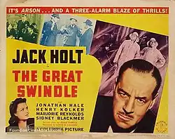 The Great Swindle is a 1941 American mystery film directed by Lewis D. Collins and starring Jack Holt, Jonathan Hale and Henry Kolker.[1] It was produced by Larry Darmour for distribution by Columbia Pictures.