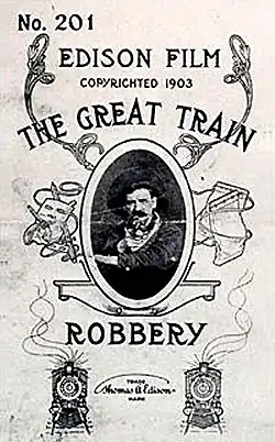 The Great Train Robbery is a 1903 American silent Western action film made by Edwin S. Porter for the Edison Manufacturing Company. It follows a gang of outlaws who hold up and rob a steam train at a station in the American West, flee across mountainous terrain, and are finally defeated by a posse of locals. The short film draws on many sources, including a robust existing tradition of Western films, recent European innovations in film technique, the play of the same name by Scott Marble, the popularity of train-themed films, and possibly real-life incidents involving outlaws such as Butch Cassidy.