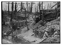 Both the scholar of English literature Chris Hopkins and the historian Michael Livingston, writing in Mythlore, note that the "battle-scarred landscapes"[35] of Middle-earth resemble those of Flanders in the Great War.[36] Frodo comes home to the Shire with what Livingston suggests is post-traumatic stress disorder (known to Great War soldiers as shell shock). He interprets Frodo's shock, sadness, and increasing pacifism as evidence of this disorder. In his view, it was not surprising that trench warfare left its mark on Tolkien's writing. He finds that Tolkien depicts this effect of war in a nuanced and sympathetic way in The Lord of the Rings.[35] Hopkins observes, too, that while Tolkien portrays the Ringwraiths as wholly evil, their footsoldiers the Orcs are clearly brutal but their speech is often a source of comedy, with grumbling conversations and "jokey idioms" that recall urban working-class soldiers' dialect from the Great War.[36]