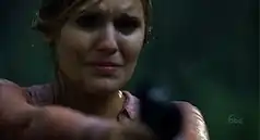 ![]() Shannon holds Locke at gunpoint. | |