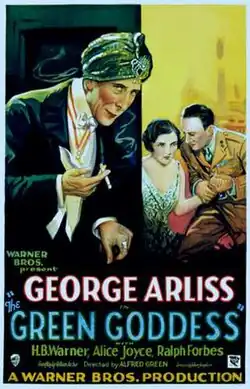 The Green Goddess first was adapted for cinema in 1923. Produced by Distinctive Productions, it was directed by Sidney Olcott and played by George Arliss, Alice Joyce and Jetta Goudal.