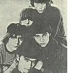 The band was formed on the Lower East Side of Manhattan in New York City by bassist Gordon McLaren.[1] Their lineup consisted of McLaren along with Ronnie Peters on lead vocals and tambourine, Peter Hindlemen on lead guitar, Norman "Cooker" DesRosiers on rhythm guitar, and Bobby Cortez on drums. They played regularly at the Scene, a New York nightclub and became one of the most popular live acts around town, for a while second only to the Young Rascals, and were signed by Ahmet Ertegun to Atco Records in 1965.[1] For Atco the Groupies cut a single "Primitive" b/w Leiber & Stoller's "I'm a Hog for You," which was released in January 1966.[1][2] However, Ertegun's high expectations for the band did not materialize, as the band failed to score a hit or gain recognition outside of New York City. None of this was helped by the band's uncompromisingly noncommercial musical approach, which they sometimes used the term "abstract music" to describe.[3] Nor was the band willing to cooperate with the label's attempts to promote them, even going so far as on one occasion to miss a concert planned for them in Philadelphia, and instead boarding a plane to Los Angeles. The label dropped them, but the band became involved in the Los Angeles scene for a while, and were captured on field recordings made by Neil Hopper of songs such as "Down In the Bottom" and "You Changed Again".[4] However, the group met with limited success in L.A. and eventually broke up.[5]