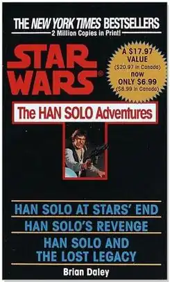 The Han Solo Adventures is a trilogy of novels set in the Star Wars fictional universe by American science-fiction novelist Brian Daley. It follows the smuggling days of Han Solo and Chewbacca two years before the events of the original Star Wars film.[1] The books were released in 1979–1980, making them the first non-movie Star Wars books published, except for Splinter of the Mind's Eye (1978). They were also the last published until The Adventures of Lando Calrissian trilogy in 1983; both trilogies were originally published by Del Rey, a division of Ballantine Books. The three Han Solo books were also published as an omnibus edition in 1992.