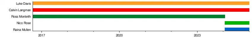 On January 24th 2024, the band announced on their Instagram that founding member Ross Monteith would be leaving the band;[9] later that day, they announced Nico Rose and Raina Mullen as new full members of the band, having previously toured alongside Langman and Davis.[10]