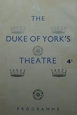 The Happy Marriage is a 1952 comedy play written by the British actor John Clements.[1] Inspired by Jean Bernard-Luc's French play Le Complexe de Philémon, it premiered at the Grand Theatre in Leeds. It then transferred to the Duke of York's Theatre in London's West End where it ran for 367 performances from 7 August 1952 to 27 June 1953.[2] The West End cast included Clements, Kay Hammond, Charles Lloyd-Pack, Michael Shepley and Frances Rowe.[3]