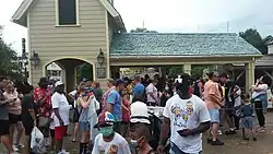 In January 2024, the Disneyland Haunted Mansion began another extensive refurbishment to reform and expand the outdoor queue, modify the nearby Magnolia Park in New Orleans Square, and add a gift shop at the ride's exit. The expansion opened on November 26, 2024; the new grounds include a accessible elevator while the gift shop, which is themed to be the mansion's carriage house, opened on December 23, 2024.[21][22][23][24][25]