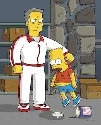 At the fat camp, Bart cheats by sneaking food that is disposed of, so Spangler takes him home to visit the family to show him the horrors that occur. His family is working continually to appease the backpackers staying in their home. The Germans humiliate the family, making Homer sing & dance for change and forcing Marge and Lisa to clean intentional messes while pointing out America's problems one by one. He suggests Bart fight his addiction, and he does, by destroying the vending machines in school. His addiction to junk food is over, and he steals the money from the vending machines, which the family uses to pay for the bill and give the Germans "Das Boot". Homer gets revenge by chasing out the Germans, and tossing one of them out. Spangler says that Bart still has three weeks left of non-refundable treatment, and Homer goes with Spangler (by force from the family, presumably as payback for calling Bart a "freeloading fatso"), where the episode ends with them driving in Spangler's car arguing over the cheeseburger Homer is eating.