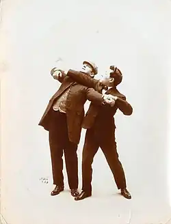 The production premiered April 10, 1905 on Broadway at the Hudson Theatre.[14] Guy Bates Post was now playing the lead role of Joe Lacy.[15] The New York Times reviewer acknowledged the show was a popular success despite its weaknesses: "Crudeness of plot and device, of situation and repartee, characterize every scene of the play. And yet there is in it something that will probably bring coming audiences to laugh and sympathize and applaud as the first one did last evening".[14] The critic for The Evening World thought the play's sub-title, "An American Comedy",[fn 1] particularly apt, being "thoroughly American" and "laugh-evoking".[16] The Sun critic praised the acting, and said of T. Tamamoto's valet character "he could have had a hundred offers of employment last night from the audience, even before he jiu-jitsued the British butler".[17]