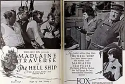 The Hell Ship is a 1920 American silent drama film directed by Scott R. Dunlap and starring Madlaine Traverse, Alan Roscoe, Betty Bouton, Dick La Reno, and Jack Curtis. The film was released by Fox Film Corporation in February 1920.[1][2]