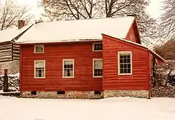 This oil and hemp mill, located on the Lititz Run creek, was built by Johannes Hess c. 1769, while he was living in the log farmhouse with wife Susanna.[15] The mill produced flaxseed oil and hempseed oil until 1790, when it began operation as a gristmill to grind wheat for flour.