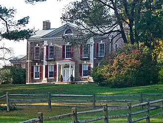 The Highlands was built in 1794-1796 by Philadelphia merchant and politician Anthony Morris (1766-1860), and was designed by Philadelphia politician Timothy Matlack (1730-1829). It is a large 2+12-story, dressed fieldstone structure in the late Georgian style. The front facade features two, two-story, Ionic order pilasters. Morris was the speaker of the Pennsylvania senate, and had signed the bill authorizing troops to suppress the Whiskey Rebellion. He was also a director of the Bank of North America (1800-1806) and a trustee of the University of Pennsylvania (1806-1817). From 1810 to 1814, he was President James Madison's unofficial envoy to Spain.[2]