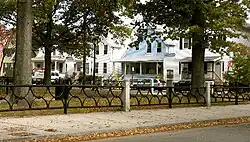 The Hill is bounded by the Route 34/Oak Street Connector and Legion Ave. at the north, the Long Wharf neighborhood at the east, the city of West Haven at the west, and Long Island Sound at the south.[5] The southeastern part of the neighborhood (south of Columbus Avenue) is roughly divided into three sections: Kimberly Square, Trowbridge Square, and City Point. This area south of Columbus Avenue originally was known as the Oyster Point Quarter, while the area north of Columbus Avenue was known as Sodom Hill. The Trowbridge Square section and the southern half of the City Point section are listed as historic districts on the National Register of Historic Places. City Point, which is located south of the railroad tracks, was traditionally a separate neighborhood but official neighborhood planning maps now include it in The Hill. The block formed by Redfield, West, Congress, and Columbus is also a state historic district known as Redfield & West Streets Historic District.