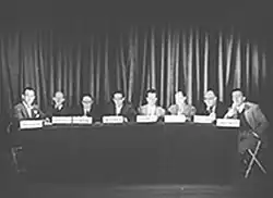 The Hollywood Ten is a 1950 American short documentary film. Shot in 16mm with a runtime of 15 minutes, it was created quickly to raise public awareness and legal funds for the ten screenwriters and directors who comprised the "Hollywood Ten".[1] At the time of filming in April 1950, the ten blacklisted men were facing prison sentences for contempt of Congress stemming from their non-cooperation with the House Un-American Activities Committee (HUAC).