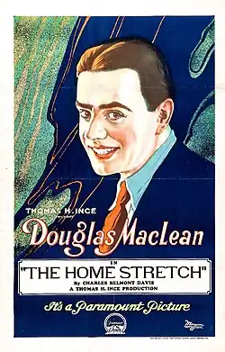 The Home Stretch is a surviving 1921 American silent drama film directed by Jack Nelson and written by Louis Stevens. The film stars Douglas MacLean, Beatrice Burnham, Walt Whitman, Margaret Livingston, Wade Boteler, Mary Jane Irving, and Charles Hill Mailes. Its screenplay was written by Louis Stevens and is based upon the short story "When Johnny Comes Marching Home" by Charles Belmont Davis, which appeared in the October 1914 issue of Metropolitan Magazine.[2] The film was released on April 24, 1921, by Paramount Pictures.[3]