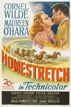 The Homestretch is a 1947 American drama film directed by H. Bruce Humberstone and written by Wanda Tuchock. The film stars Cornel Wilde, Maureen O'Hara, Glenn Langan, Helen Walker, James Gleason, Henry Stephenson and Margaret Bannerman. The film was released on May 4, 1947, by 20th Century Fox.[2][3]