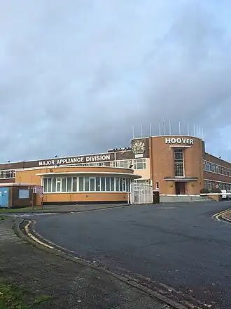 Building of the Hoover Factory began in June 1946, with the first turf being cut by the Chairman and Managing Director of Hoover Ltd., C.B. Colston.[3] Construction was completed and the factory opened in October 1948 with VIP visitors from London present.[4]