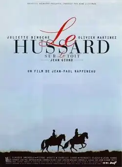 The Horseman on the Roof (French: Le hussard sur le toit) is a 1995 French film directed by Jean-Paul Rappeneau and starring Juliette Binoche and Olivier Martinez. Based on the 1951 French novel Le hussard sur le toit by Jean Giono, the film follows the adventures of a young Italian nobleman in France raising money for the Italian revolution against Austria during a time of cholera. The Italian struggle for independence and the cholera pandemic in southern France in 1832 are historical events. The film received César Awards in 1996 for Best Cinematography and Best Sound, as well as eight César Award nominations for Best Film, Best Costume Design, Best Actress, Best Director, Best Editing, Best Music, Best Production Design, and Most Promising Actress.