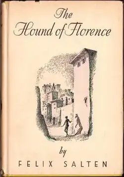 The Hound of Florence is an adventure story for young readers, set in early eighteenth-century Austria and Italy. The adolescent Lukas Grassi has lost his parents and lives in Vienna in great poverty, longs for his native Italy, and would like to study art in Florence. By magic, his wish is granted, but every other day he must take the form of a dog, Kambyses,[1] that belongs to the Archduke Ludwig; and, alternating daily between human and canine form, he travels from Vienna to Florence, along with the Archduke's troops, where he has to lead a unique double life. This is the only book of Salten in which supernatural elements occur, and they may show influence of E. T. A. Hoffmann.[2]
