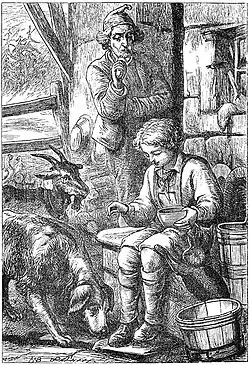 In "The Ice-Maiden", written towards the end of his career, Hans Christian Andersen tells the tale of Rudy, a boy who lost both his parents and goes to live with his uncle.[3] The reader is first introduced to Rudy as he sells toy houses made by his grandfather. Rudy grows up to become a skilled mountain climber and huntsman.