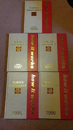 The Illustrated Science and Invention Encyclopedia was an encyclopedia of books originally published in parts in the United Kingdom under the title How It Works, by Marshall Cavendish Limited,[1] and republished in the United States in 1974 by H.S. Stuttman Publishers in Westport, Connecticut, in 21 volumes (OCLC 3643238). It was supplanted by their The New Illustrated Science and Invention Encyclopedia: How It Works, a 28 volume set edited by Donald Clarke and Mark Dartford, published in 1987 (ISBN 9780874754506) (OCLC 1333004714), and then republished in 28 volumes from 1989 to 1993 (ISBN 9780874754506),(OCLC 28822057). A 2003 edition numbered 20 volumes, and was well reviewed.[2]