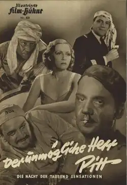 The Impossible Mister Pitt (German: Der unmögliche Herr Pitt) is a 1938 German adventure crime film directed by and starring Harry Piel. It also features Willi Schur, Leopold von Ledebur and Hilde Weissner.[1][2] It was shot at the Babelsberg Studios in Berlin and on location off the coast of Split in Croatia. The film's sets were designed by the art directors Otto Erdmann and Hans Sohnle. It was based on the novel of the same title by Georg Mühlen-Schulte who also worked on the screenplay.[3]