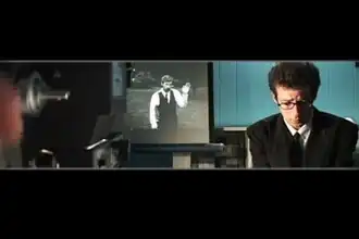 Cockburn transforms this anxiety of performance into one of influence, through the theme of fathers and sons, which Mike Hoolboom traces across a number of Cockburn's videos, including WEAKEND, which premiered at the same festival as The Impostor, in which video the theme is "brought to a head".[2] To comply with the commission, Cockburn must take inspiration from an influential predecessor or "video dad", Colin Campbell.[2] The man speaking in the video, according to Cockburn, has an "adverse relationship to his late father (who is also himself) – an antagonism born of disassociation, of one party's ignorance and the other's absence."[3] He is attempting to breach that chasm by throwing a rope across it, "even as a third aspect of himself scissors the rope into little bits."