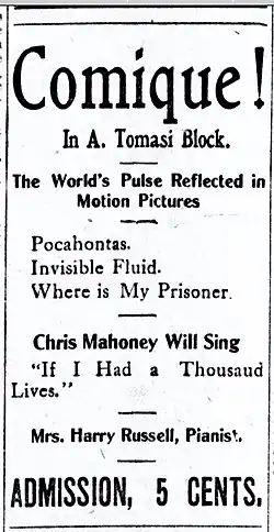 - ^ "At the Orpheum Tonight", East Oregonian (Pendleton, Oregon), November 13, 1909, p. 5, col. 4. Retrieved via Chronicling America: Historic American Newspapers, online database co-sponsored by the Library of Congress and the National Endowment for the Humanities (Washington, D.C.), June 15, 2023;