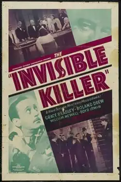 The Invisible Killer is a 1939 American mystery film directed by Sam Newfield and starring Grace Bradley, Roland Drew and William Newell.[1] It was one of the earliest films made by Producers Releasing Corporation, a low-budget outfit concentrating on second features.