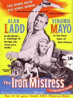 The Iron Mistress is a 1952 American Western film directed by Gordon Douglas and starring Alan Ladd and Virginia Mayo. It ends with Bowie's marriage to Ursula de Veramendi and does not deal with his death at the Battle of the Alamo in 1836.[2]