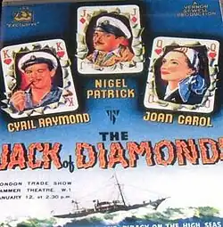 The Jack of Diamonds is a 1949 British adventure film directed by Vernon Sewell and starring Nigel Patrick, Cyril Raymond and Joan Carroll.[2][3] Its plot follows an ex-soldier who persuades some yacht owners to help recover a treasure chest of jewels he hid off the French coast in 1940 during the Second World War. It is considered a lost film.[4]