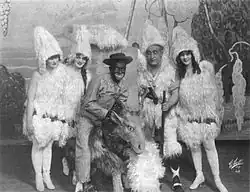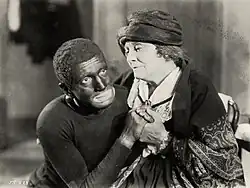 According to performer Eddie Cantor, as negotiations between Warner Bros. and Jessel floundered, Jack L. Warner and the studio's production chief, Darryl Zanuck, called to see if he was interested in the part. Cantor, a friend of Jessel's, responded that he was sure any differences with the actor could be worked out and offered his assistance.[12] Cantor was not invited to participate in the Jessel talks; instead, the role was then offered to Jolson, who had inspired it in the first place. Describing Jolson as the production's best choice for its star, film historian Donald Crafton wrote, "The entertainer, who sang jazzed-up minstrel numbers in blackface, was at the height of his phenomenal popularity. Anticipating the later stardom of crooners and rock stars, Jolson electrified audiences with the vitality and sex appeal of his songs and gestures, which owed much to black american sources."[13] As described by film historian Robert L. Carringer, "Jessel was a vaudeville comedian and master of ceremonies with one successful play and one modestly successful film to his credit. Jolson was a superstar."[14] Jolson took the part, signing a $75,000 contract on May 26, 1927, for eight weeks of services beginning in July.[15] There have been several claims but no proof that Jolson invested some of his own money in the film.[16] Jessel and Jolson, also friends, did not speak for some time after—on the one hand, Jessel had been confiding his problems with the Warners to Jolson; on the other, Jolson had signed with them without telling Jessel of his plans. In his autobiography, Jessel wrote that, in the end, Jolson "must not be blamed, as the Warners had definitely decided that I was out."[17]