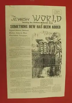 The Jewish World is a Jewish weekly newspaper founded by Sam S. Clevenson on September 23, 1965, covering the Capital District of New York.[1] It was also published under the names Schenectady Jewish World and Albany Jewish world. In 2008, after Clevenson died, his two children Laurie and James continued to publish the newspaper.[2][3]