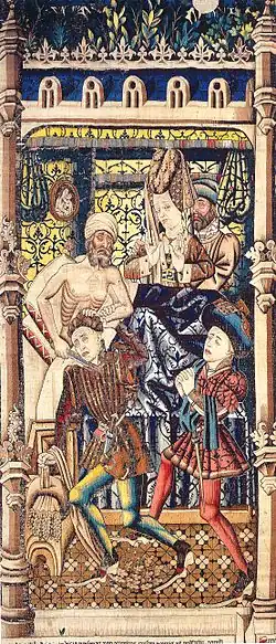 Both Nicholas of Cusa (in 1453) and Dubuisson-Aubenay (in the 1620s) mentioned that the work contained a self-portrait, generally thought to be faithfully reproduced in the 'Herkinbald slaying his nephew' passage.[4]