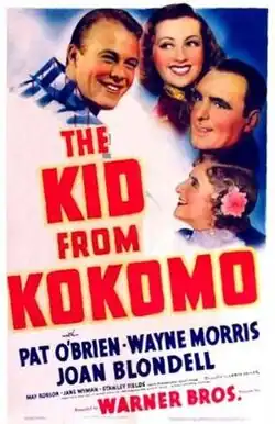 The Kid from Kokomo is a 1939 American comedy film directed by Lewis Seiler and written by Richard Macaulay and Jerry Wald. The film stars Pat O'Brien, Wayne Morris, Joan Blondell, May Robson, Jane Wyman and Stanley Fields. The film was released by Warner Bros. on May 23, 1939.[1][2][3]