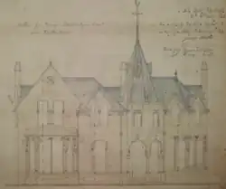 Preliminary design of front elevation, The Kirna, 1866