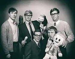 The Kitchen Cinq originally evolved out of the Illusions in Amarillo, Texas.[1][2][3] Between 1961 and 1962, guitarist Mark Gordon Creamer of the Illusions invited Jim Parker to join the group who, at that time had two other members, including bassist Dale Gardner.[2] Parker was friends with Jimmie Gilmer, who with his band the Fireballs had a hit with "Sugar Shack".[2] The group's sound was heavily influenced by the British Invasion bands from England, particularly the Dave Clark Five.[1] The Illusions released a single on Dot Records that featured an A-side "Brenda (Don’t Put Me Down)" written by Jim Parker backed with "Secrets of Love" co-written by Parker and band Gardner.[2][4] It was recorded in Odessa, Texas at a studio owned by Tommy Allsup, who had played on the same bills as stars such as Buddy Holly & the Crickets and Ritchie Valens in the 1950s.[2] The Illusions' single became a regional hit.[2] According to Parker, "I was the elder statesman in the group – I was 19, 20-ish then ...and we played around town, and JD Souther’s group, The Cinders, was in competition with us. We were buddies, but we got most of the great gigs because we had a full band and Mark played organ, harmonica and guitar, and we had five-part harmonies...."[2]