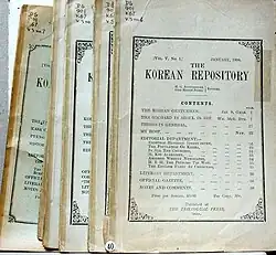 The Korean Repository was the name for both a monthly English-language magazine published in Korea from January 1892 to December 1898 and a successor weekly newspaper from around February to June 1899.[1] It was the first English-language monthly magazine published in Korea.[2]